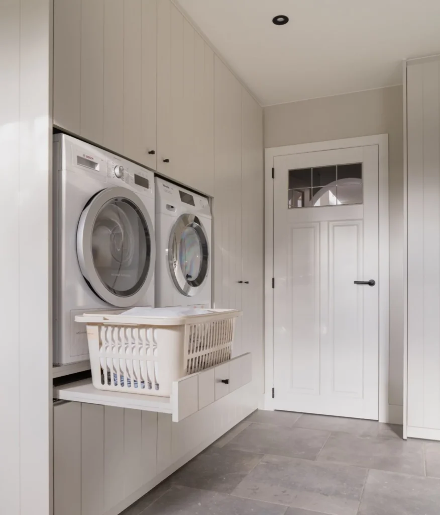 Het is een goed idee om een opbergruimte te voorzien voor je mand met vuile was. Wil je je gedroogde was achteraf gaan strijken? Dan heb je nu de ruimte om dit te doen. Geef alles een vaste plaats achter een gesloten deur. Dat maakt een gigantisch verschil voor je humeur!