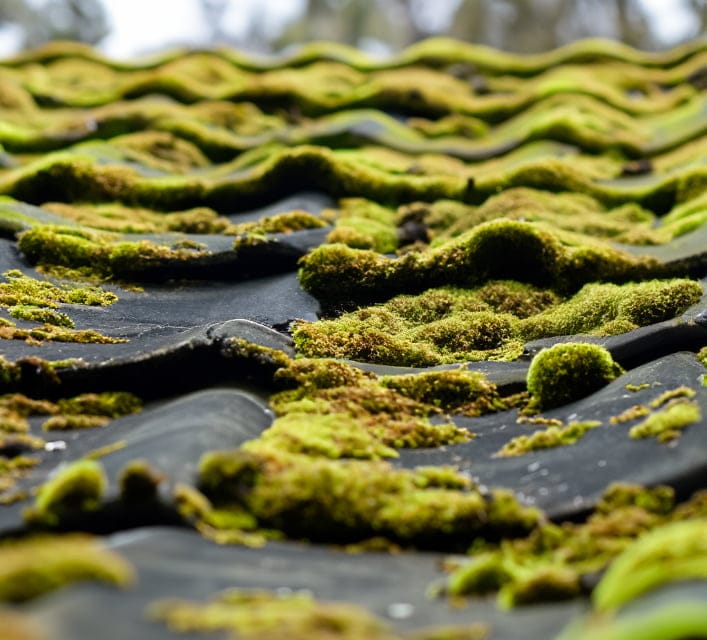 Mossen en algen op je dak zijn allesbehalve een fraai zicht. De vorming van (korst)mos en algengroei zijn nochtans compleet natuurlijke fenomenen. Mossen zetten zich graag vast op de meest schaduwrijke plekjes van je dak. Ze houden niet zo van zonnebaden. Vandaar dat je helaas nooit een mooi compleet egaal mostapijt krijgt op je dak. Veel vaker is het mos her en der verspreid als donkergroene, lichtgroene en zelfs bruine matten.
