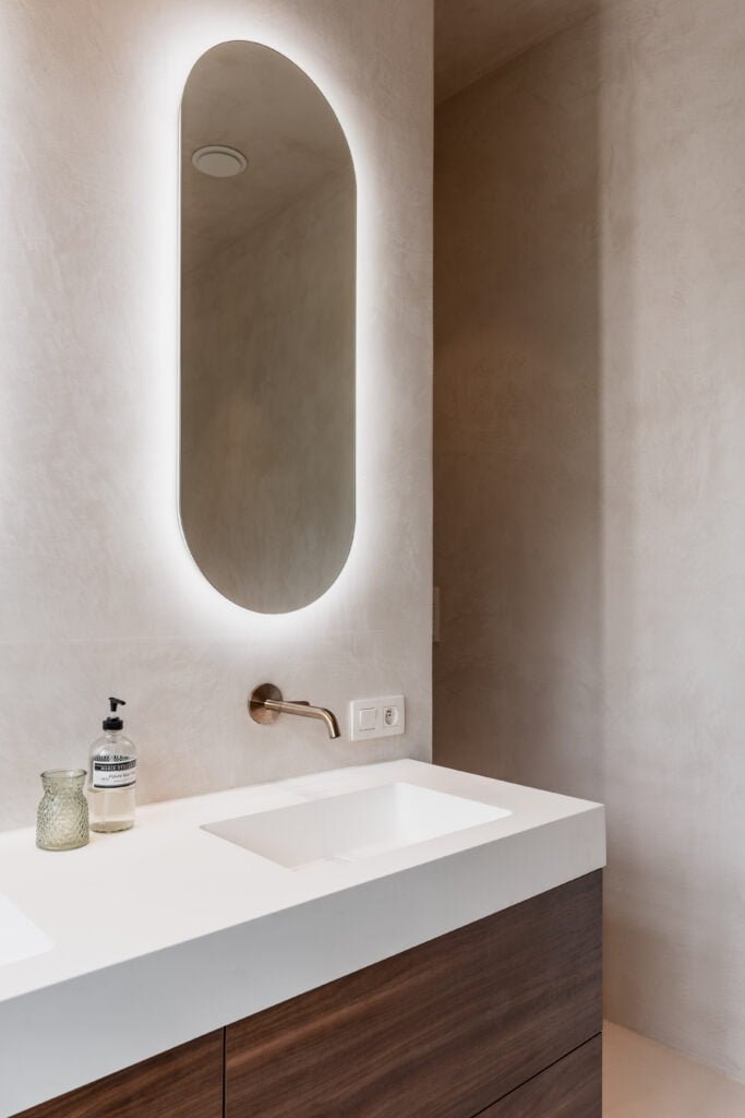 De badkamerinrichting werd nauwkeurig geplaatst, compleet met sfeervolle LED-verlichting voor de finishing touch.