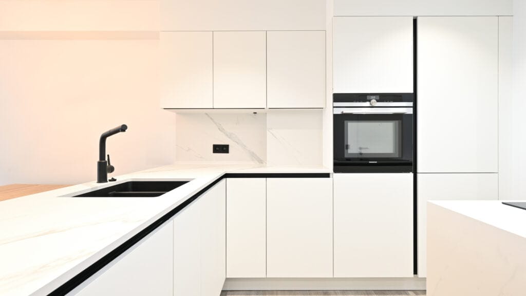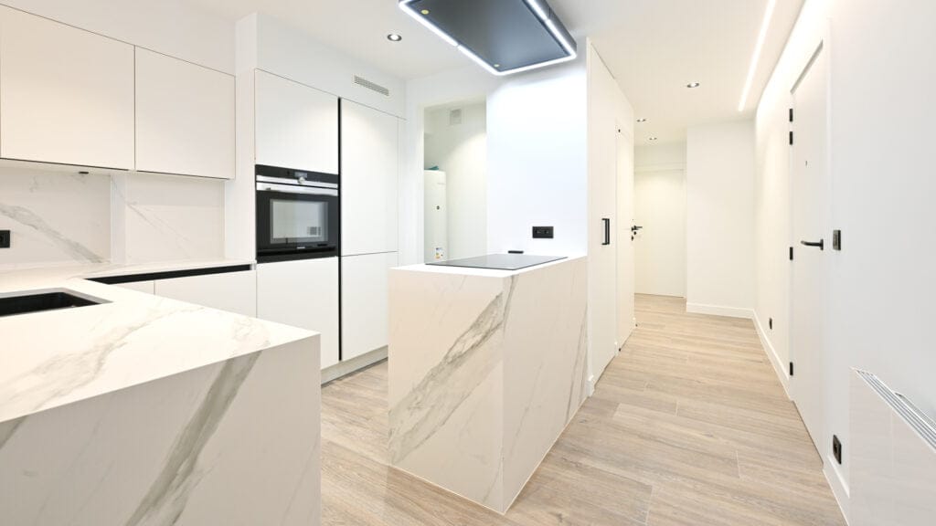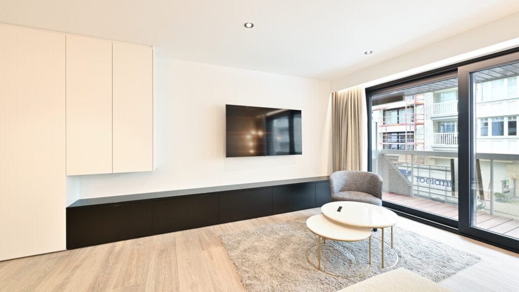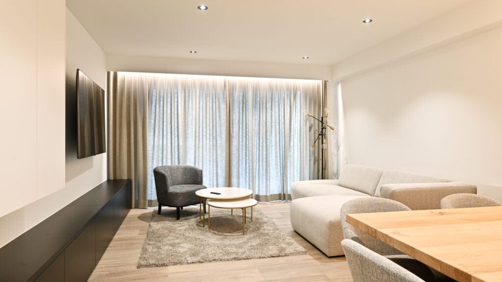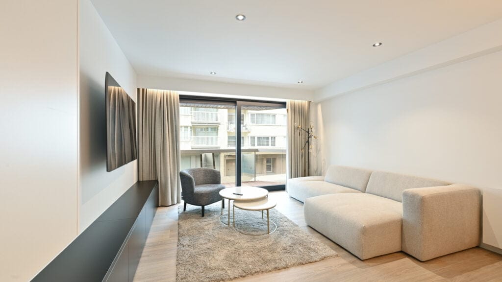 Tifre verzorgde een uitgebreide interieurrenovatie voor het appartement van familie Smet in Knokke. De renovatie omvatte de volledige vernieuwing van de living, keuken, slaapkamers en badkamers, waarbij het interieur een complete make-over kreeg.